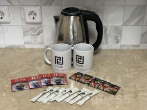 • Кухня: кухонная плита, холодильник, микроволновая печь, электрический чайник и фильтр для воды.