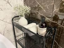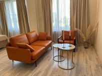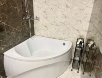 Номер оснащён большой двуспальной кроватью, кондиционером, гардеробной, диваном, удобным креслом и джакузи.
