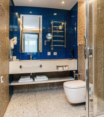 В номере гостей ждет всё для комфортного пребывания: теплый пол, комплекты гигиенических средств, black-out шторы и вся необходимая техника. Присутствует регулировка температуры в номере с помощью системы "умный дом".