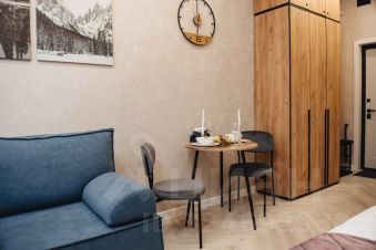 Студия подойдет для пары или для небольшой семьи до 4-ех человек.