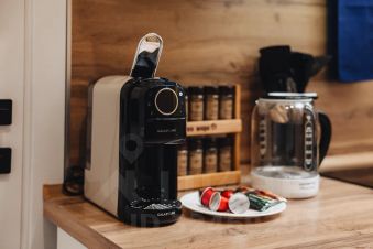 Мы позаботились о комфорте наших гостей: в квартирах есть холодильник, микроволновая печь, чайник, плита, капсульная кофемашина,стиральная машинка, фен, пылесос, сушилка для обуви,телевизор, игровая приставка,игры настольные.