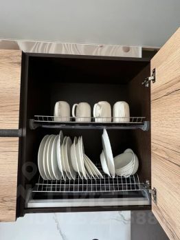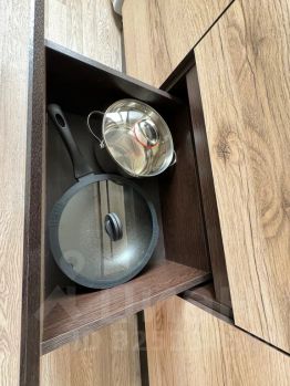 Кухня оборудована всем необходимым, чтобы приготовить завтрак, обед и ужин — или хотя бы красиво разложить доставку.