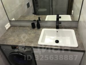 •Ванная комната: инсталляция, душевая кабина, раковина, большое зеркало, стиральная машина, фен)