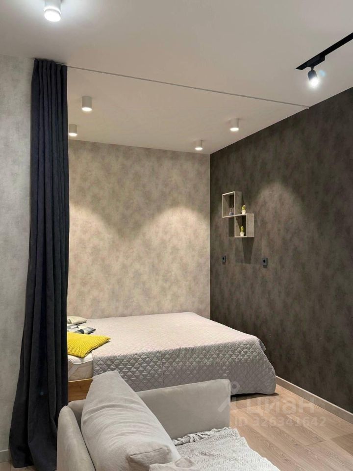 Спальная зона: двуспальная кровать, мягкий диван для отдыха