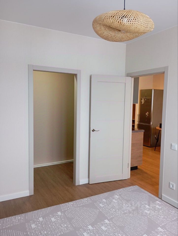 В спальне двуспальная кровать и гардеробная.