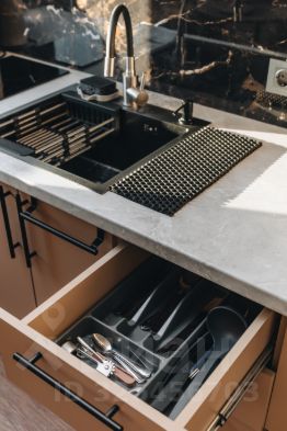 Полностью оборудованная для готовки кухня.