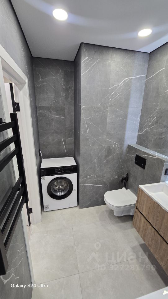 • Санузел совмещённый с парней ванной, скрытым шторы кмрнизом и инсталляцией. Стиральная машина с функцией пара.