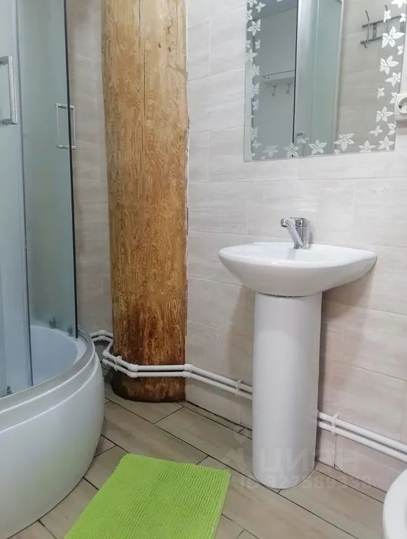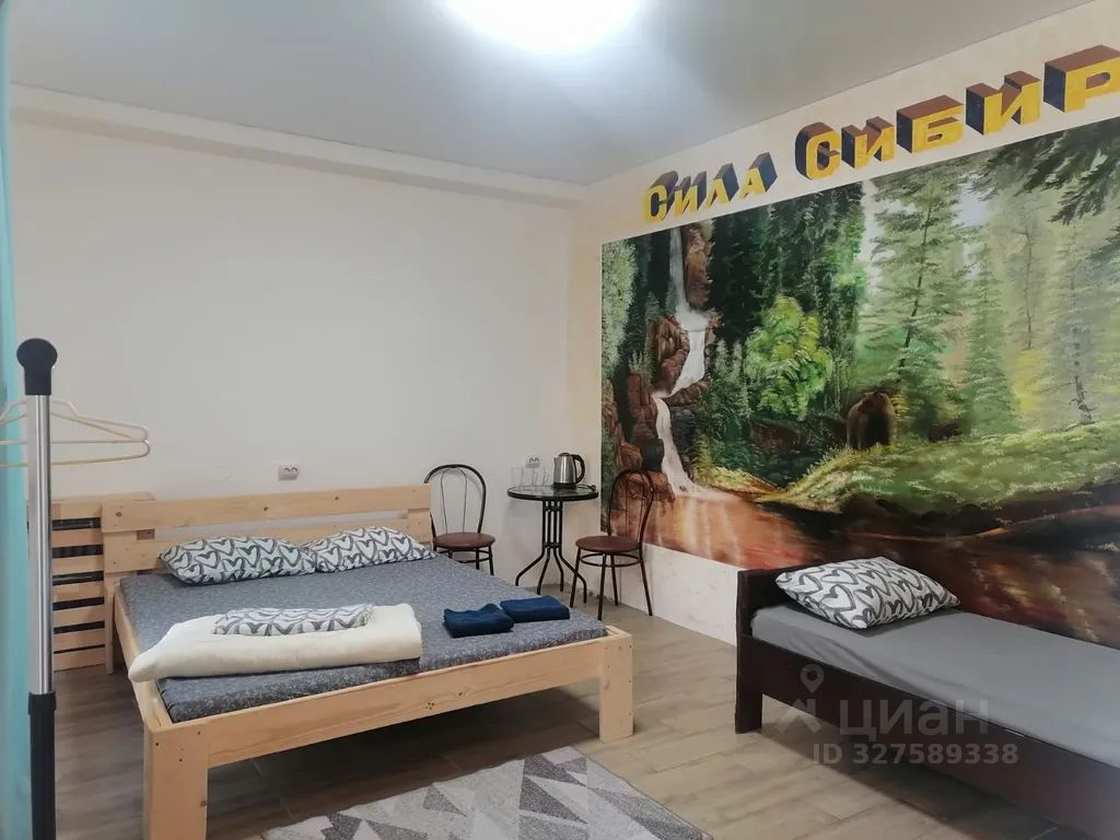 Уютная комната на троих. Отдельный вход с улицы. Комната одна, в ней двуспальная кровать и односпальная. Стол, стулья, кружки, чайник. Душ, туалет в номере. По всему периметру тёплый пол. В здании есть общая кухня на 3 этаже.