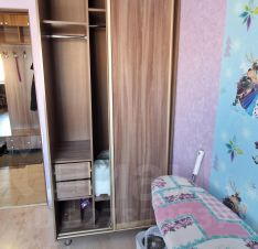В квартире имеется вся необходимая техника: чайник, микроволновая печь, встроенная плита с духовым шкафом, стиральная машинка, холодильник с морозилкой, роутер wi-fi. Квартира частично мебелирована. В зале стоит большой диван с зонами хранения. В спальне - большая кровать (к кровати прилагается 2 новых комплекта постельного белья, т.к. размеры матраса нестандартные), также в спальне есть большой шкаф-купе с зеркальными дверьми во всю стену и встроенный стол, вдоль стены с окном, который можно использовать для работы или учебы. В кухне есть стол и четыре стула. В коридоре-прихожей есть небольшая встроенная зона хранения в углу, а также большой открытый гардероб для верхней одежды с закрывающимися ящиками вверху и внизу. Ванная комната оборудована душевой кабиной, есть раковина с тумбой и навесным шкафчиком. Самая маленькая комната использовалась как хозяйственная под сушку белья, глажку и хранение бытовых предметов по уборке, в ней также имеется небольшой шкаф купе для хранения вещей. Также в квартире есть кондиционер.