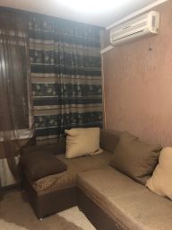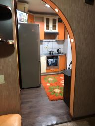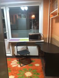 Квартира расположена на 7 этаже панельного дома с двумя пассажирскими лифтами. Из мебели имеется вместительный шкаф и диван, а также необходимая бытовая техника: холодильник, стиральная машина и микроволновая печь.