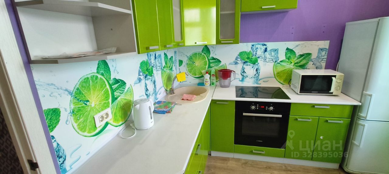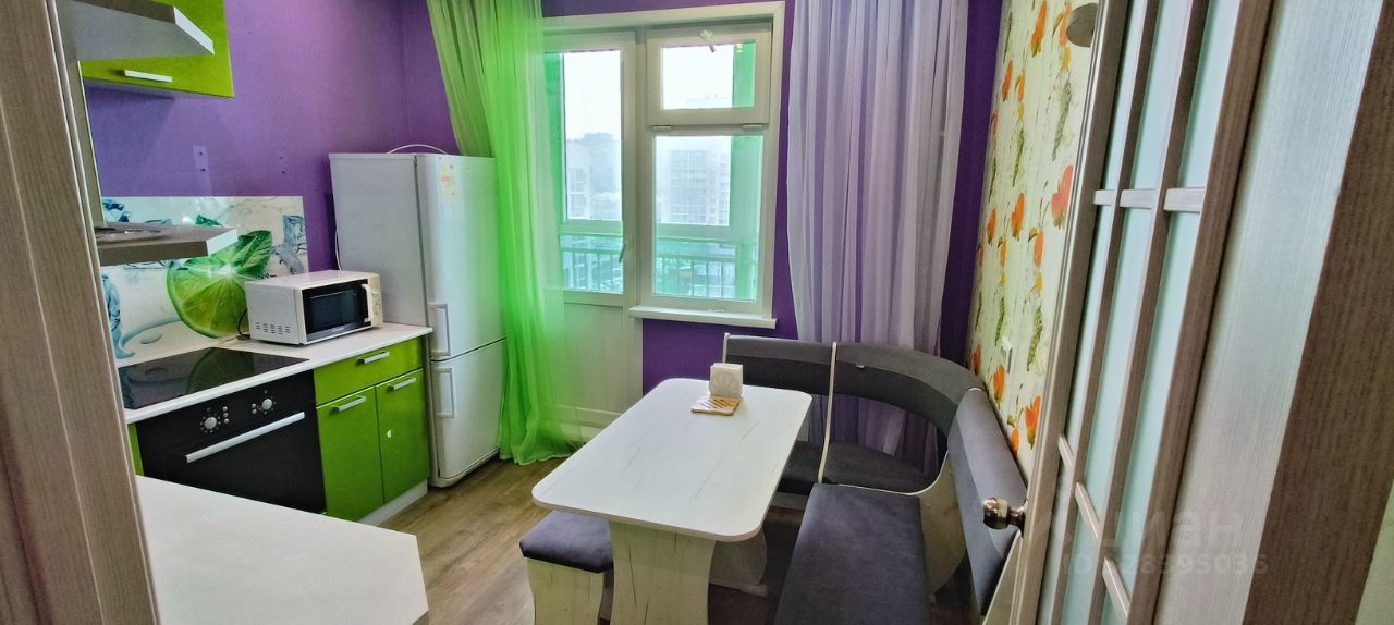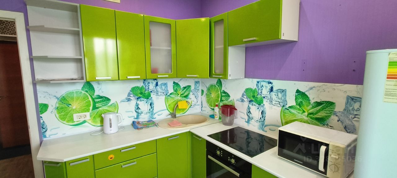 Кухня: полностью оснащена — мебель, холодильник, плита, духовка, микроволновка, чайник, посуда (кастрюли, сковорода). Есть выход на просторный остекленный балкон (на окнах детские замки-блокираторы, ребенок не откроет).