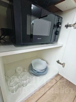 Укомплектованная техникой и посудой кухонная зона