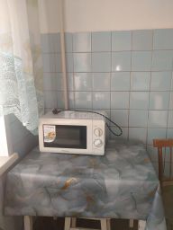 В квартире выполнен косметический ремонт и есть все необходимое для проживания. В комнате диван, шифоньер с зеркальными створками. На кухне: стол с табуретками, кухонный гарнитур. Из техники имеется электрическая печь, холодильник, микроволновка, стиральная машинка. В коридоре прихожая.