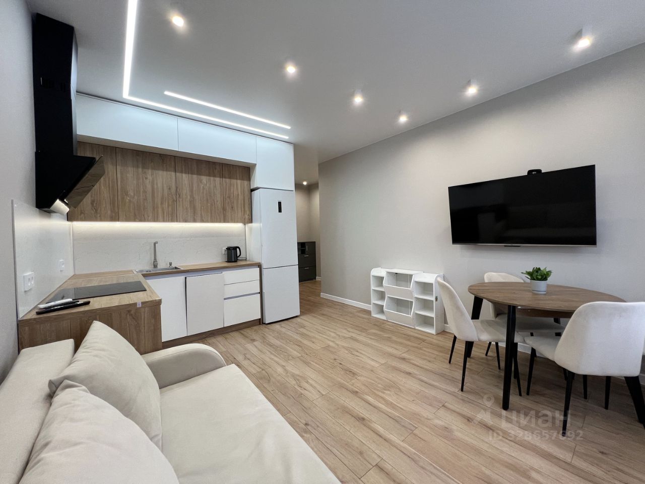 Техника: телевизор, двухкамерный холодильник, варочная панель, духовой шкаф, СВЧ-печь, посудомоечная машинка, стиральная машинка автомат, кондиционер, водонагреватель, чайник, утюг.