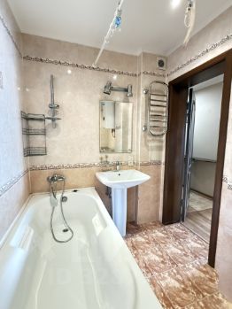 В квартире выполнен косметический ремонт, поэтому всё выглядит свежо и аккуратно. В комнатах и на кухне есть необходимая мебель, а также вся техника: кондиционер, холодильник, телевизор и стиральная машина. Санузел совмещённый, имеется ванна, что удобно для любителей расслабиться после рабочего дня.