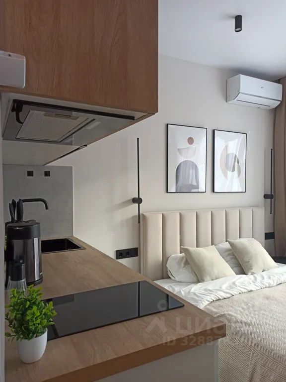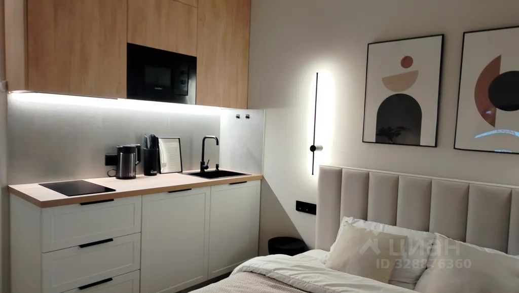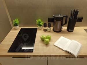 Кухня пoлнoстью оснащена для приготовления любых блюд: холодильник с морозильной камерой, инверторная варочная панель, микроволновая печь, вытяжка, электрический чайник, вся необходимая посуда и расходники