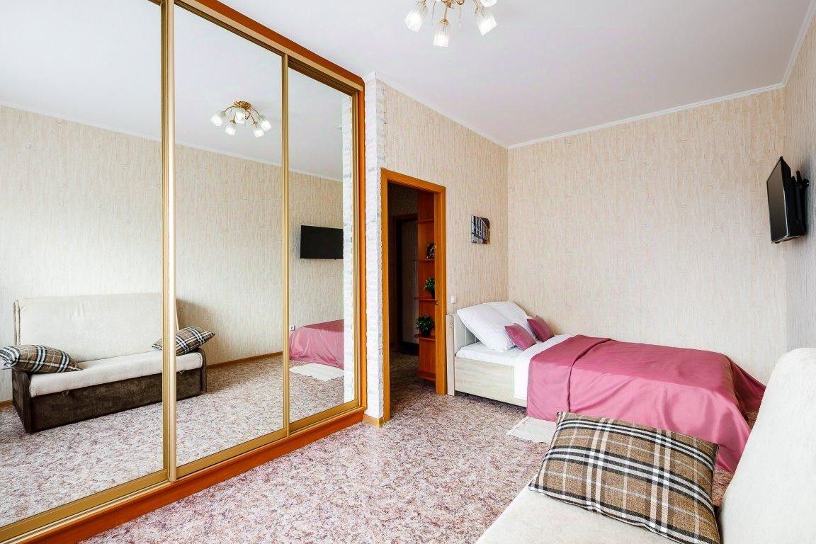 В квартире предусмотрена двуспальная кровать и раскладной диван. Апартаменты оснащены всем необходимым для комфортного отдыха: скоростной wi-fi от ростелеком, smart tv от ростелеком (wink), водонагреватель, фен, сушилка для белья, утюг, гладильная доска, необходимая бытовая техника и посуда. Чистое хлопковое бельё гостиничного уровня, комплект полотенец для каждого гостя, чай, средства гигиены (мыло, шампунь, гель для душа)