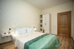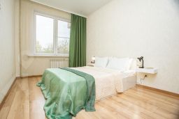 - Изумруд, яркая трехкомнатная квартира в современном стиле с двуспальной кроватью, двумя односпальными кроватями и раскладывающимся диваном.