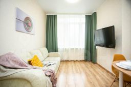 В квартире есть всё необходимое для комфортного проживания: посуда, столовые приборы, электрический чайник, плита, стиральная машина, фен с режимом холодной сушки, утюг, гладильная и сушильная доски, широкоформатный ТВ, бесплатный быстрый Wi-Fi, кабельное тел