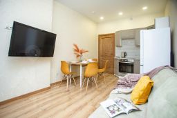 - Латте, уютная студия в светлых тонах, с двуспальной кроватью и раскладывающимся диваном;