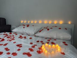Романтическое предложение - украшение лепестками роз, свечи, сервировка стола - 600₽