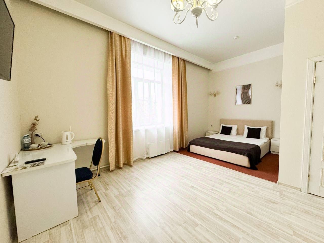 Стандартный номер. В комнате имеется вместительный шкаф-купе с зеркалом, рабочая зона, кабельное ТВ, wi-fi, телефон, туалет, душевая кабина, чайная зона.