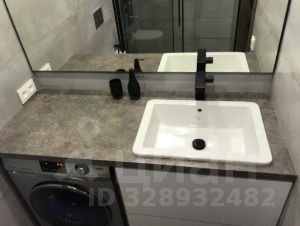 •Ванная комната: инсталляция, душевая кабина, раковина, большое зеркало, стиральная машина, фен)