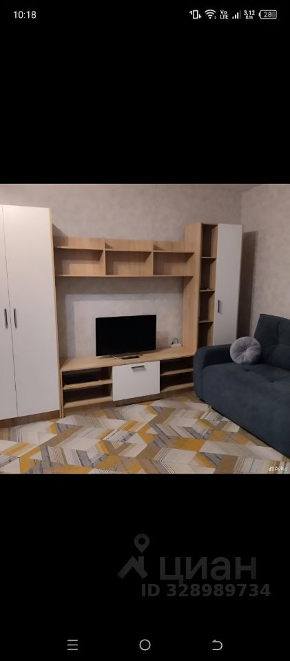 В гостиной установлен современный раскладной диван, новый журнальный столик и телевизор, а также вместительная стенка с полками для хранения вещей. Из мебели в комнате есть шкаф, новый комод, удобная рабочая зона - компьютерный стол, кресло.