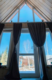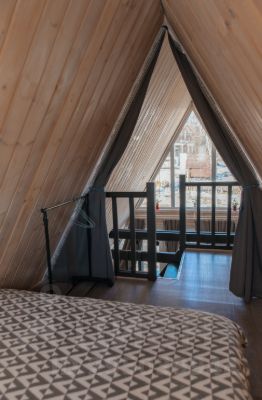 В нашем доме ( вы почувствуете приятный , уютный аромат дерева ) построен в стиле шале ( А-фрейм )- идеальное решение для спокойного семейного отдыха и для атмосферных , дружеских посиделок и для романтического уик- энда