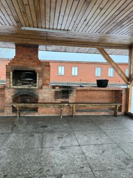 На территории: большая беседка с освещением (вместимость 15 человек), 2 мангала (возле дома и в беседке), в свободном доступе казан, решетки, шампура.