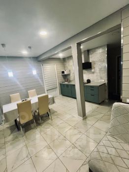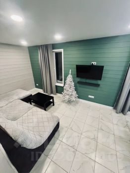 гостиная - студия с большим диваном и ТВ, музыкальным центром с санбуфером;