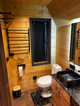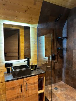 Отдельная спальная зона на 2 этаже домика (мансарда), за закрытыми шторами, на первом этаже раскладной диван-кровать. Что позволяет разместится на 2 основных + 2 дополнительных места. Постельное белье предоставляем.