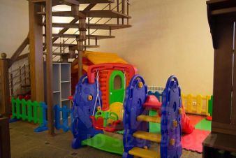 В зоне отдыха два дивана, 3D телевизор, кедровая сауна. Для маленьких посетителей предусмотрен "детский игровой уголок".