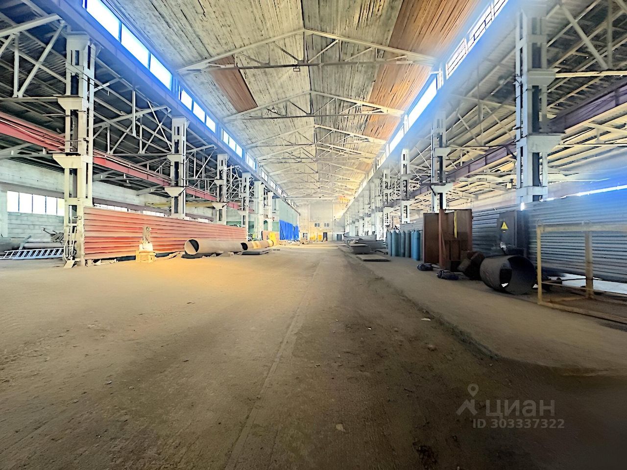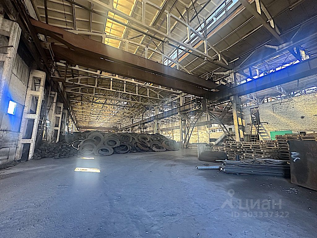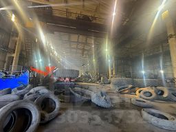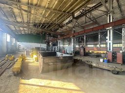 - Производственный корпус общей площадью 2200 м2. Состоит из двух продольных пролётов 18х60 м. Высота потолков 12 м. В цеху установлены мостовые краны грузоподъёмностью 7,5-15 т.