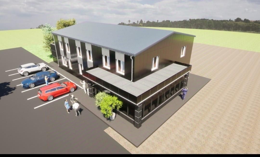 Площадь боксов(складов) около 1500 м2. Возведены стены из кирпича 4 м. Есть металлические фермы для крыши.