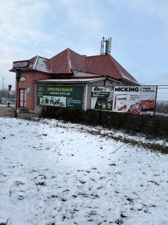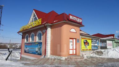 Это двухэтажное кирпичное здание площадью 224 кв м, фасад отделан сайдингом. Отдельно вход для посетителей и отдельно зона разгрузки товара. Площадь основного торгового зала составляет 80 кв м, и состоит из двух половин. Отдельно расположен ещё один торговый зал площадью 40 кв м. Складское помещение находится на 1-ом этаже, его площадь составляет 45 кв м. На мансардном этаже расположены кабинет и комната отдыха.