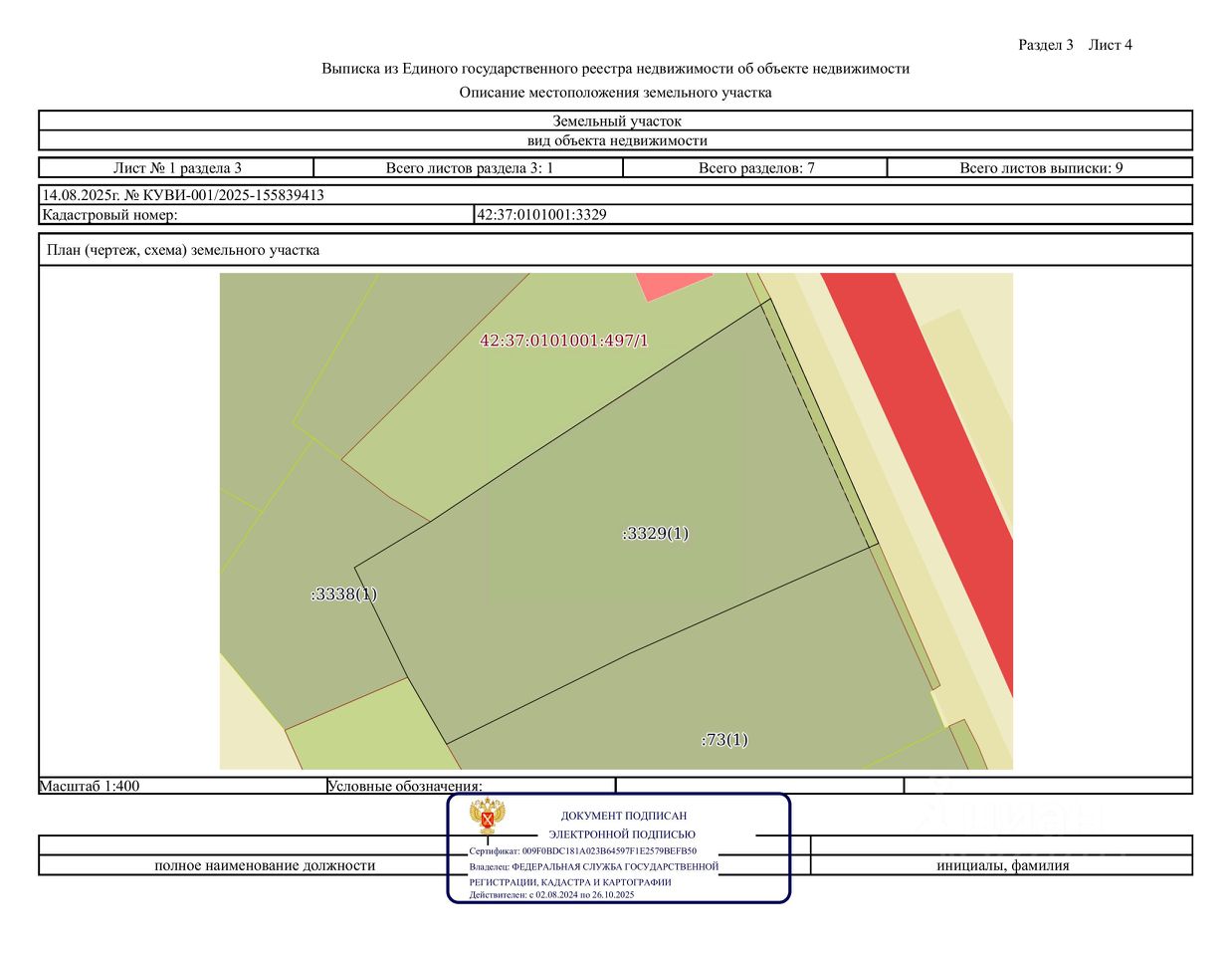Кемеровская область, г. Калтан, ул. Санаторная, д. 4, с кадастровым номером 42:37:0101001:3329, площадь 944 кв.м., малоэтажная жилая застройка (под индивидуальное жилищное строительство)