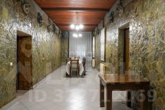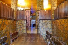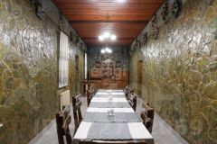 Территория кухни связана с зоной мангала, отдельно оборудованной на улице, рядом имеется отдельное помещение с назначением под мясной цех и включает в себя: металлическую мойку, морозильные камеры, весы, деревянные полки, три металлических стола.