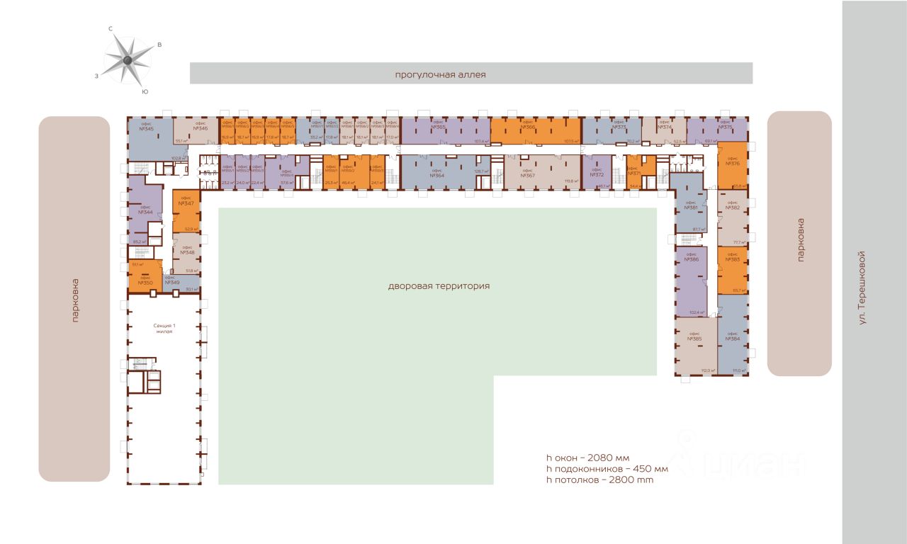 Архитектура: 5 секций переменной этажности (от 5 до 15 этажей).