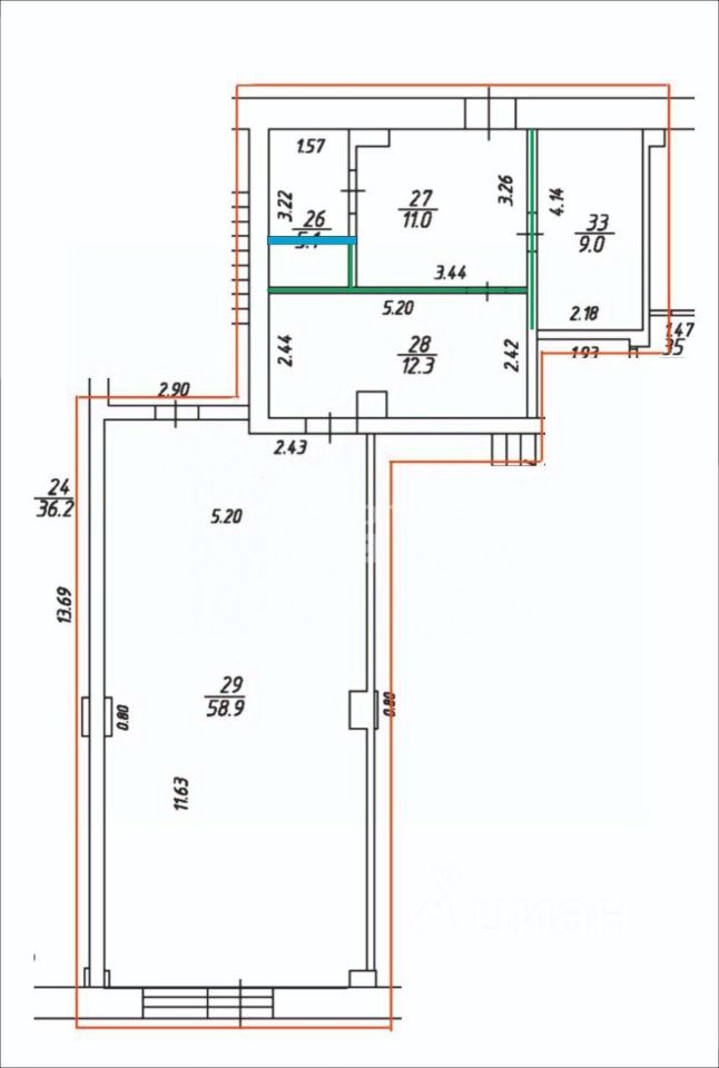 Планировка: Помещение имеет удобную прямоугольную форму, что позволяет легко организовать рабочее пространство. Две мокрые точки. Есть возможность установить душевую кабину.