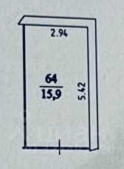 15,9 м2 площадь. Размер 2,94*5,42 м.