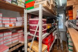 • В подсобном помещении оборудовано большое количество полок для хранения товара