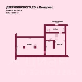 Площадь нулевого этажа: 118,5 кв.м, высота потолков 2,36 м.