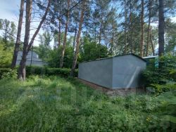 Гараж окружен соснами и зеленью, за гаражом есть площадка, где можно организовать зону отдыха.