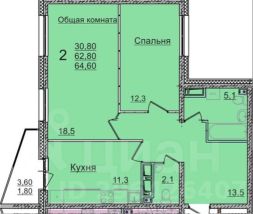Возможность перепланировки в евротрешку с большой кухней-гостиной.