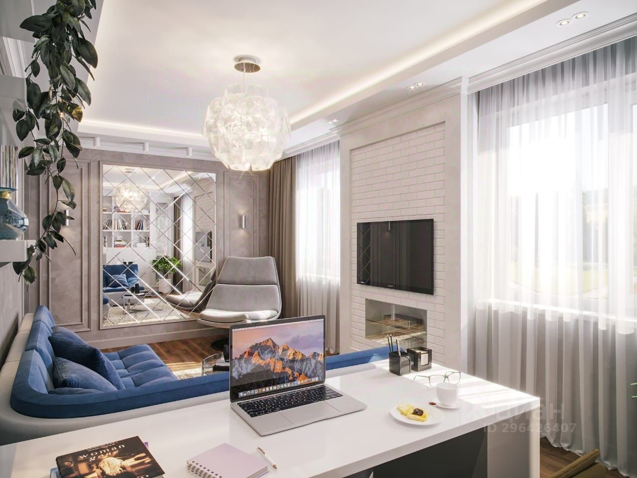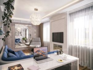 Есть готовый дизайн-проект гостиной (первые фото).