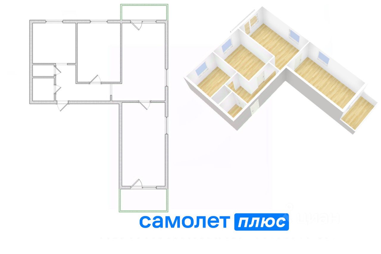 В квартире балкон и лоджия (застеклена), квартира просторная, светлая, все комнаты большие. Пластиковые окна, межкомнатные двери.