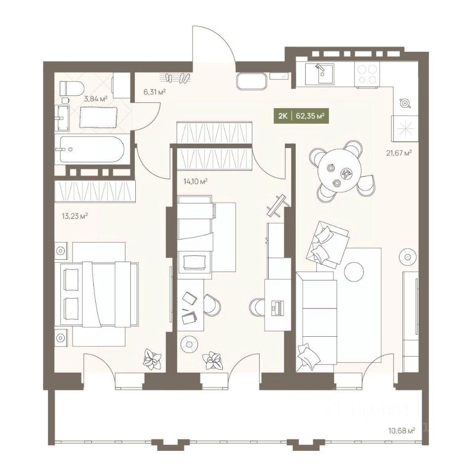 В жилом комплексе NOVA на Московском в продаже квартира N 11 площадью 62.35 кв.м. Кирпич от фасадов до межкомнатных стен, высокие потолки, большие окна и остекленная лоджия. Квартира сдается в отделке white box. 17-этажный дом, с последних этажей которого открываются панорамные виды на город.