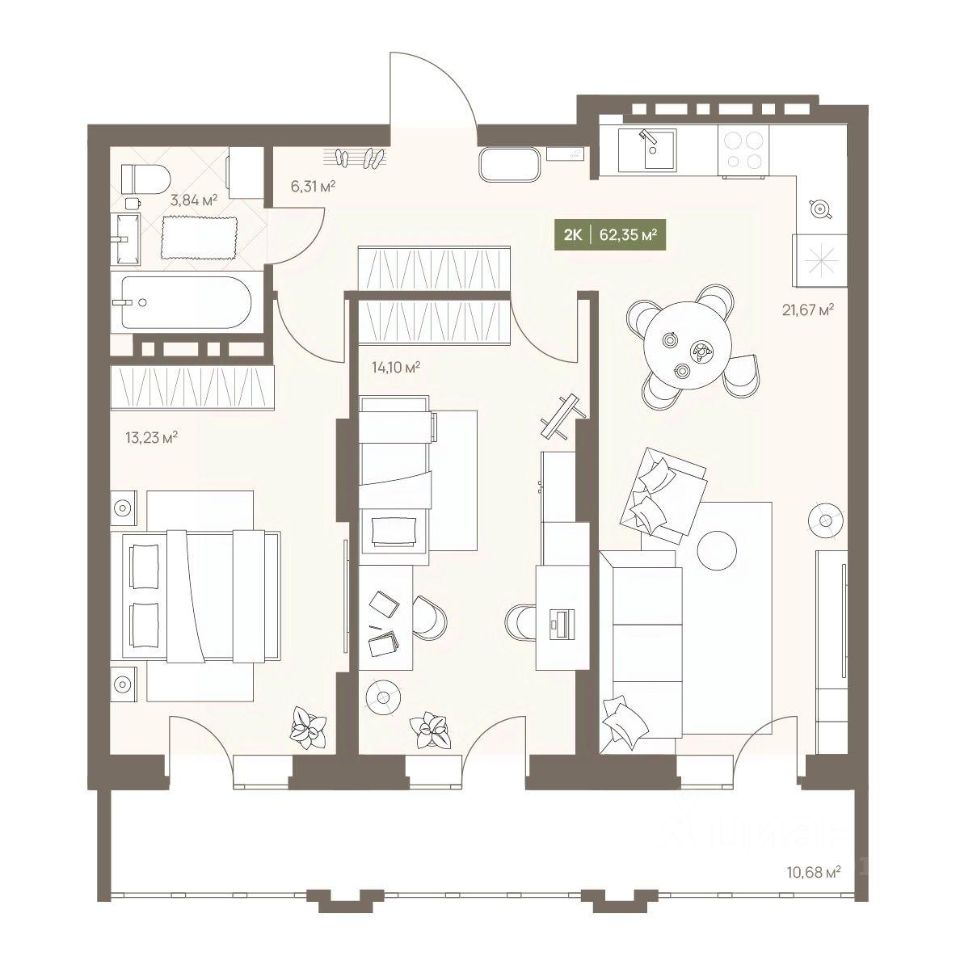 В жилом комплексе NOVA на Московском в продаже квартира N 60 площадью 62.35 кв.м. Кирпич от фасадов до межкомнатных стен, высокие потолки, большие окна и остекленная лоджия. Квартира сдается в отделке white box. 17-этажный дом, с последних этажей которого открываются панорамные виды на город.