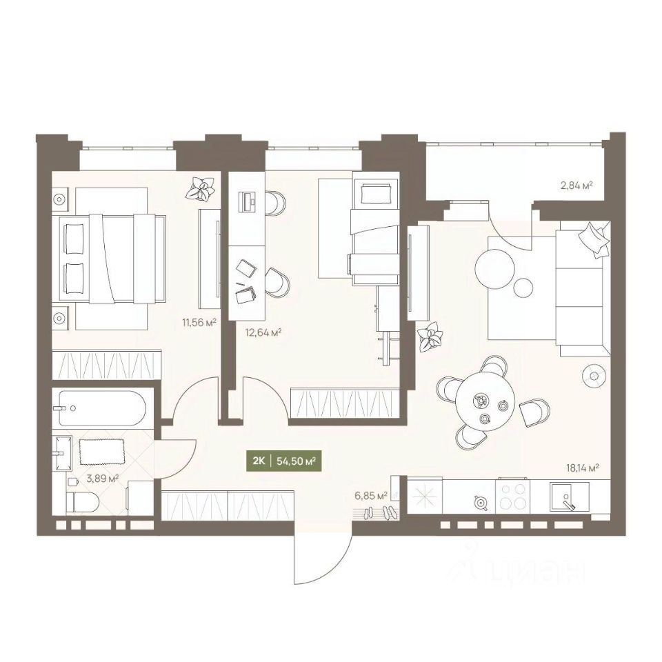 В жилом комплексе NOVA на Московском в продаже квартира N 133 площадью 54.5 кв.м. Кирпич от фасадов до межкомнатных стен, высокие потолки, большие окна и остекленная лоджия. Квартира сдается в отделке white box. 17-этажный дом, с последних этажей которого открываются панорамные виды на город.